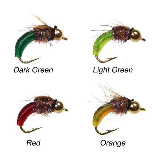 1/3Pcs/Box #10 Fishing Accessories Brass Bead Head Sinking Nymph Scud Fly Worm Trout Fishing Flies Artificial Insect Bait Lure