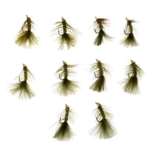 10pcs 1.8'' Olive Wooly Bugger Flies Bead Head Nymph Flies Insects Wet Flies with Artificial Feathers and Barbed Single Hook