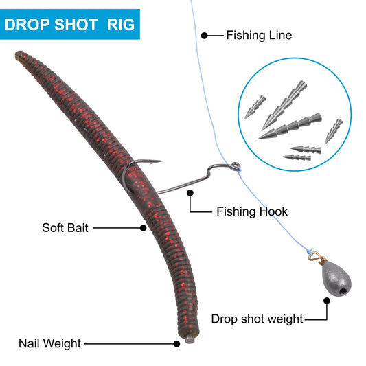 20Pcs Fishing Tungsten Nail Weights Pagoda Wacky Nail Sinkers Pencil Worm Insert Fishing Weights for Carolina Rig Texas Rig