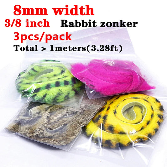 3strips/pack fly tying magnum zonker rabbit strips 8mm width larger zonker for Pike&Musky big streamer pattern&saltwater flies