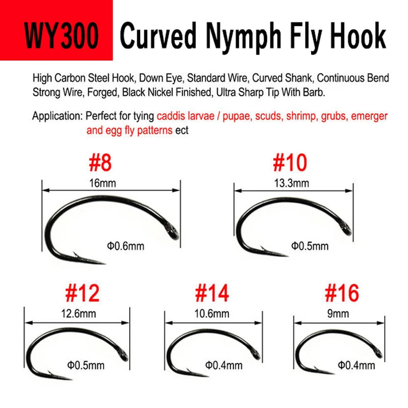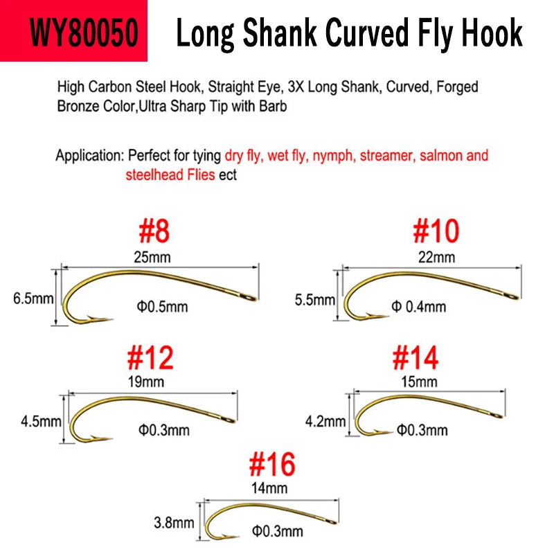 WIFREO 50pcs High Carbon Steel Fly Fishing Hooks 8#~22# Dry&Wet&Nymph&Shrimp Caddis Pupa Streamer Fly Tying Hooks